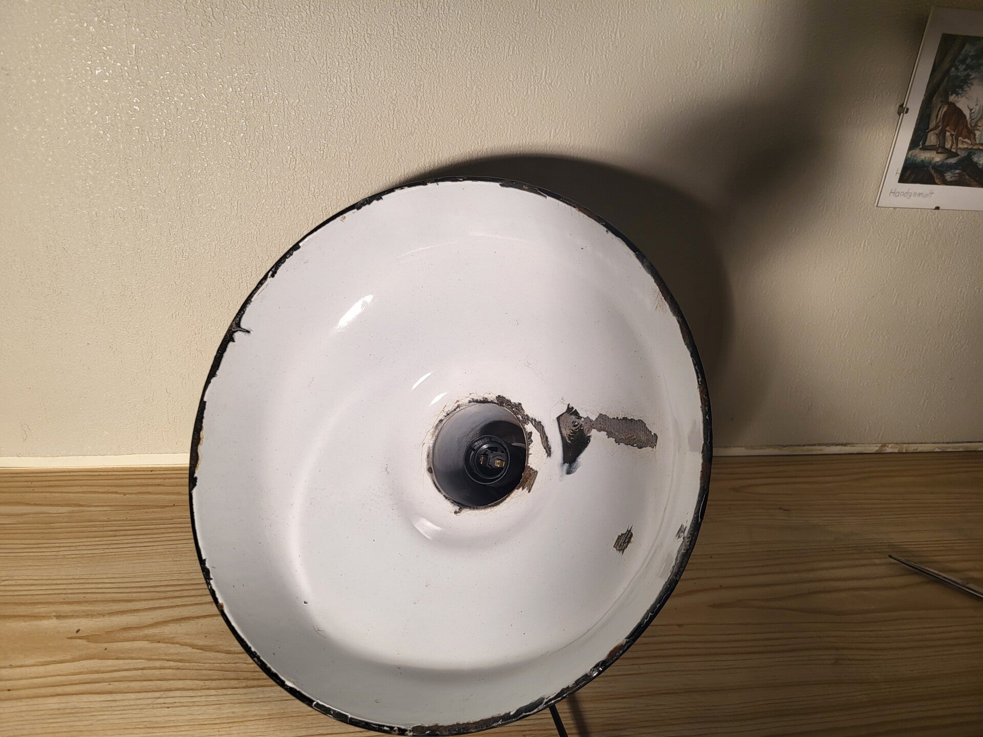 Der Lampenschirm ist emailliert.
