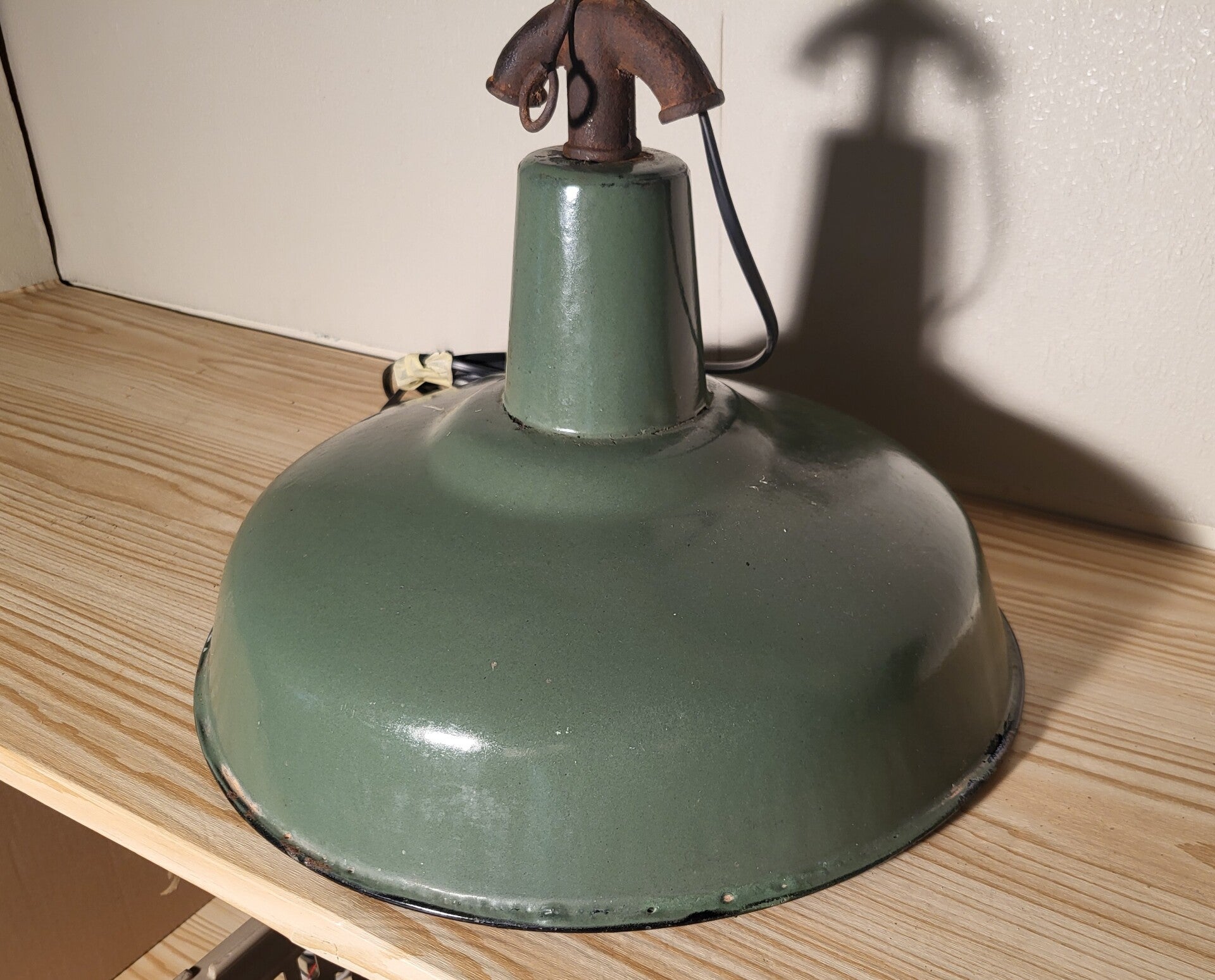 Wunderschöne grüne Industrielampe aus den 20er Jahren