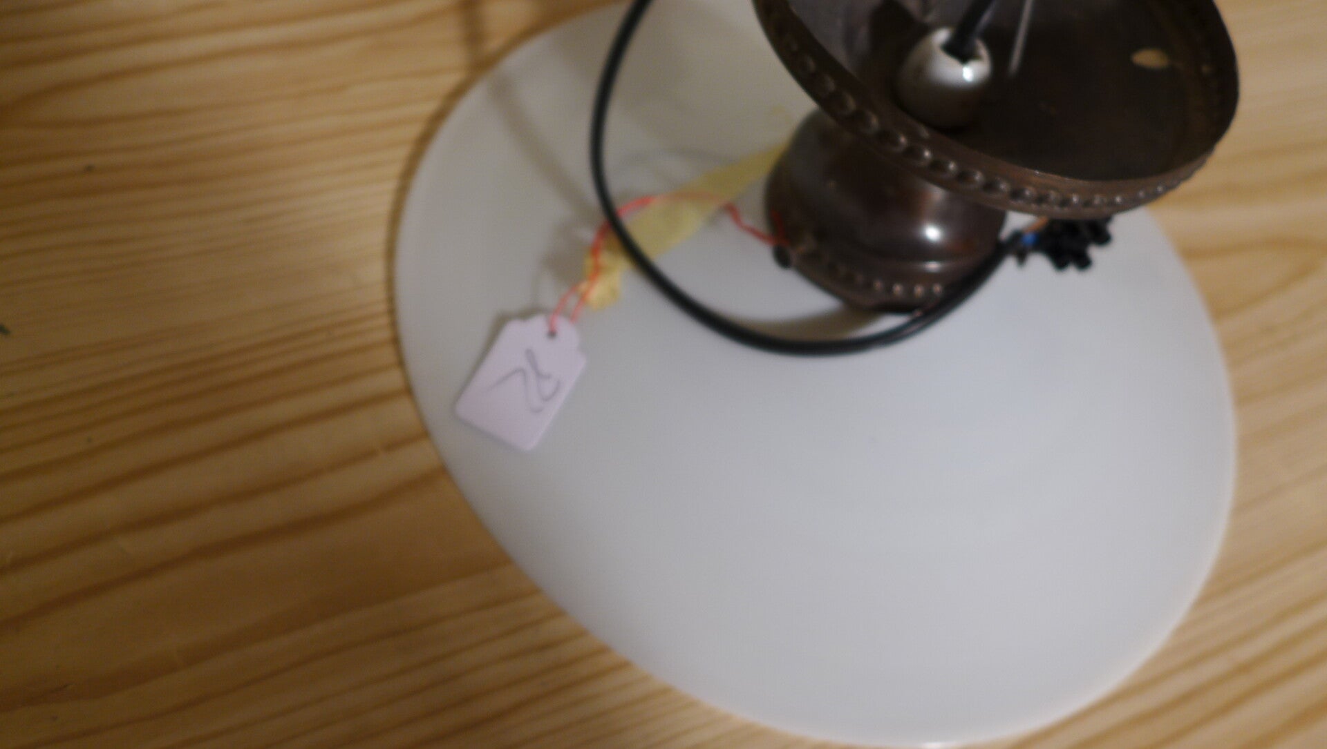 Antike Lampe mit Glasschirm und Messing Bordüre Nr. 82