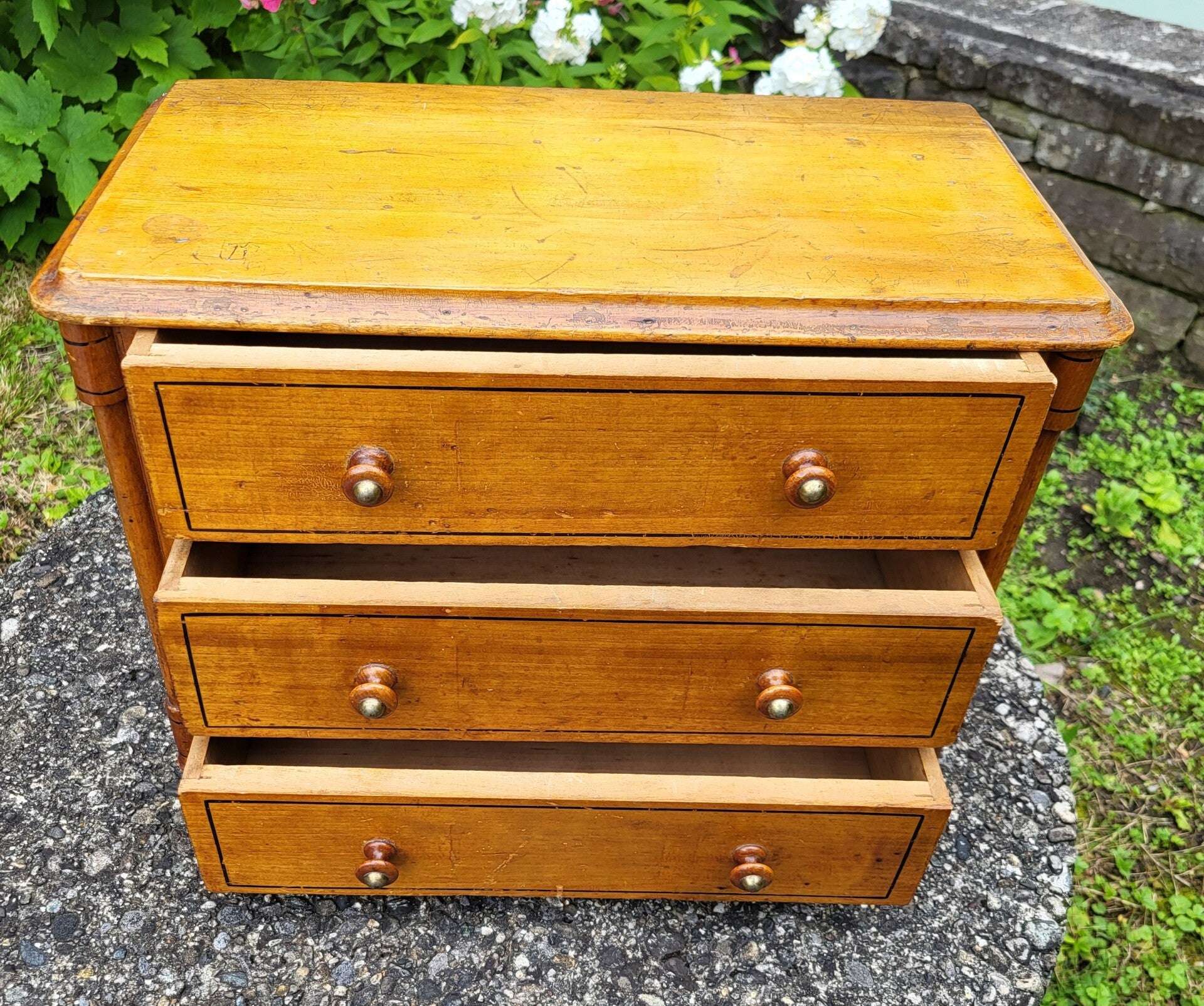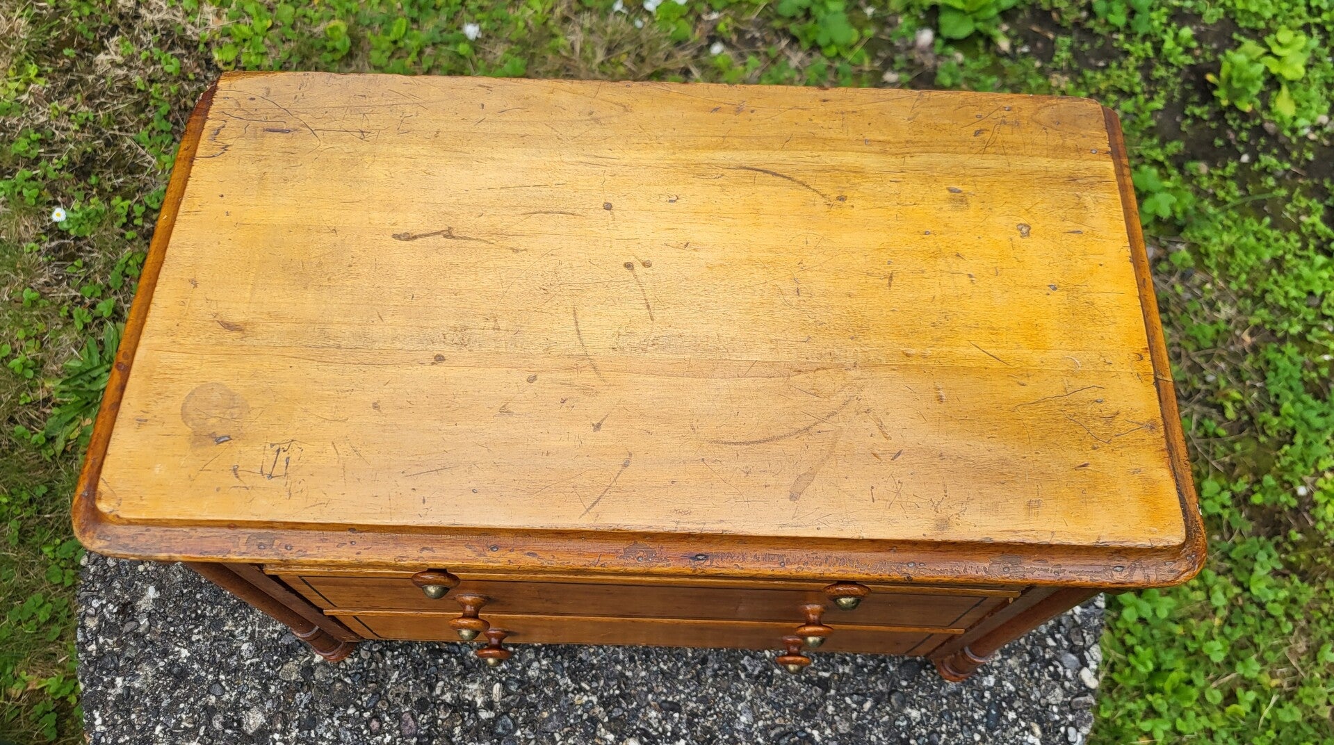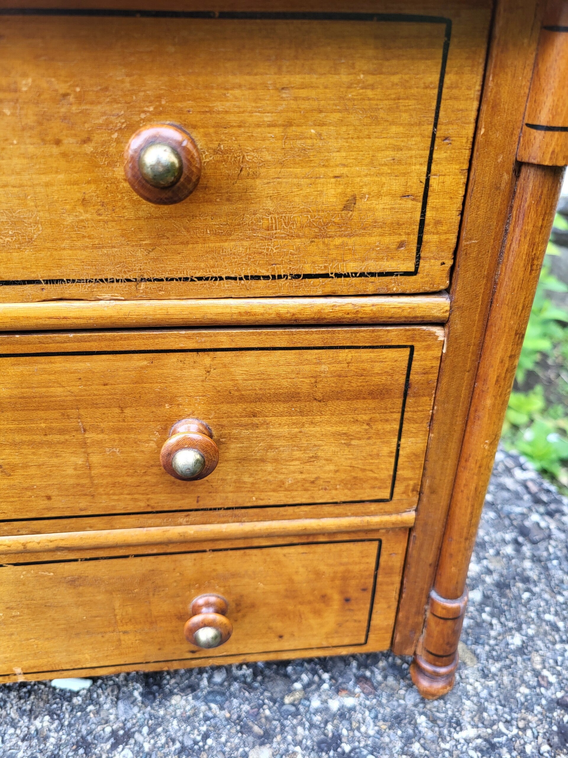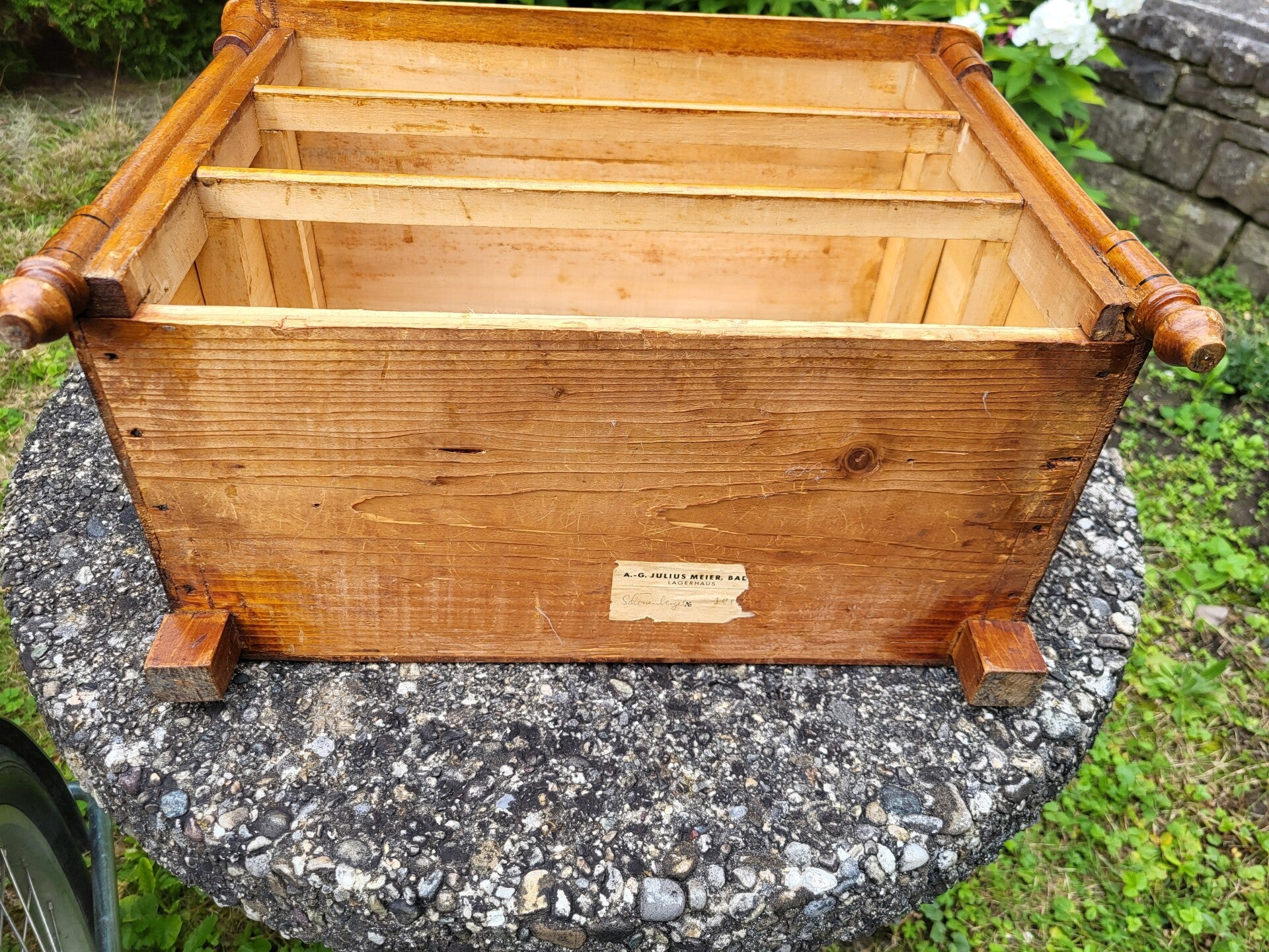 antike Modell Kommode um 1870/80. Die Kommode ist aus massiv Holz. Keine Furniere drann. Holzart Ahorn. Der originale Lack ist mit der zeitgenössischer Verzierung noch drann.