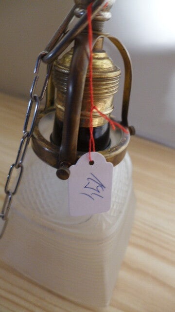 Diese charmante alte Lampe präsentiert sich in neuem Glanz. Der Glas-Schirm sorgt für eine angenehme Lichtverteilung und verleiht jedem Raum ein stilvolles Ambiente.