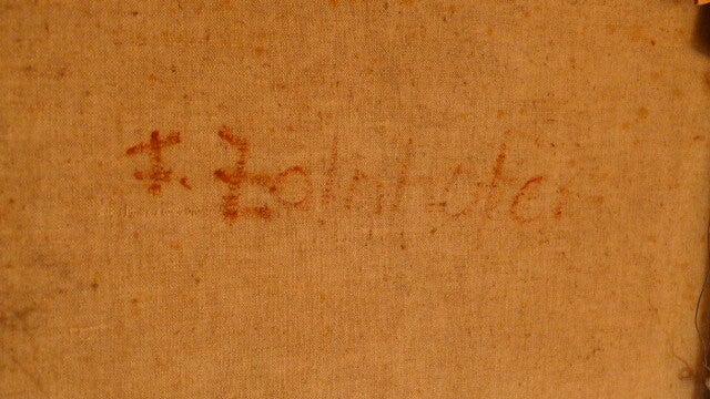 Dieses Öl auf Leinen zeigt die charakteristische Handschrift Zolnhofers. Das Gemälde ist ohne Rahmen und weist leichte Gebrauchsspuren auf, die seine Authentizität unterstreichen.
