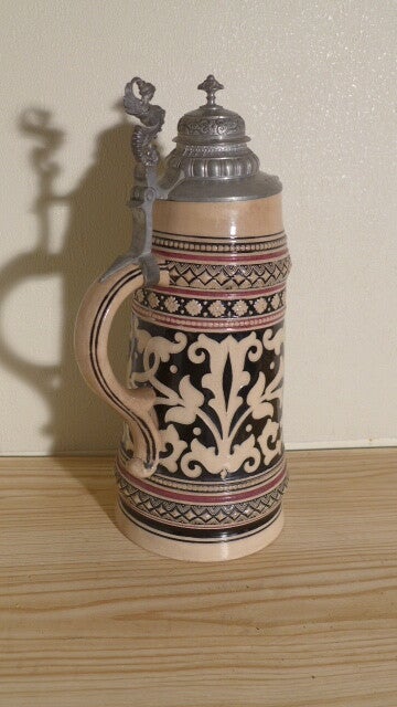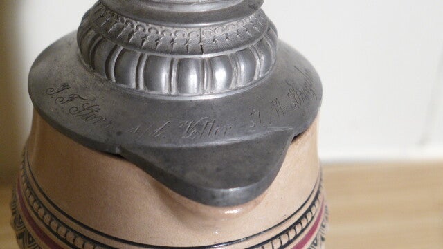 Steingutkrug mit Zinndeckel um 1900