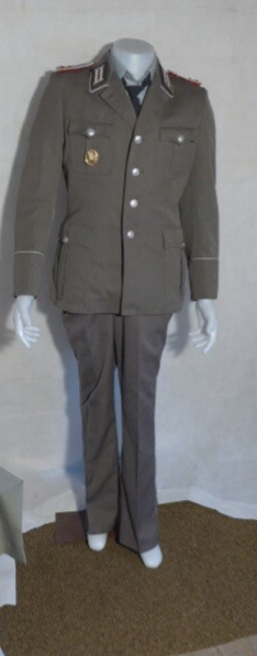 Dieses Set umfasst eine Jacke, ein Hemd, eine Hose sowie eine Mütze. Die Uniform gehörte einem Oberleutnant der Nationalen Volksarmee (NVA) in der Truppengattung Artillerie.
