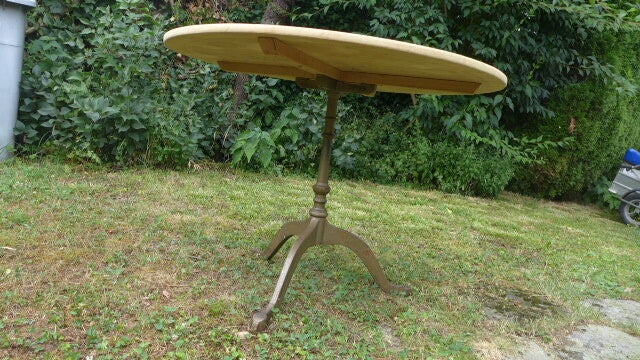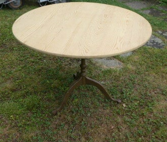 Dieser antike runde Beizentisch besticht durch seine natürliche Tannenholzplatte, die roh und geschliffen ist. Die schlichte, aber zeitlose Form macht ihn zu einem vielseitigen Möbelstück für verschiedene Einrichtungsstile.