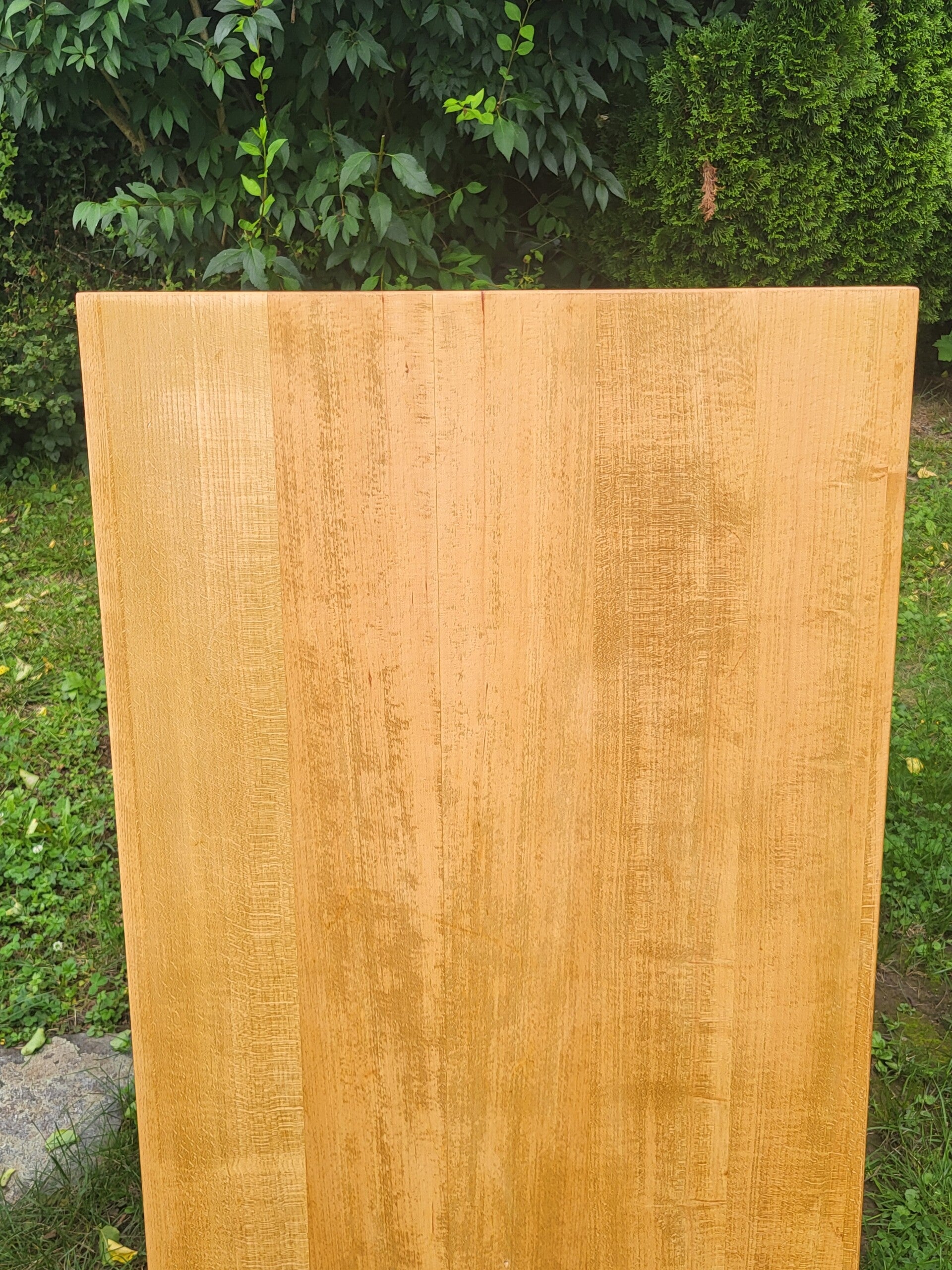 Die Oberfläche wurde sorgfältig geschliffen und mit Öl behandelt, was nicht nur die natürliche Holzstruktur betont, sondern auch optimalen Schutz bietet. So ist die Platte sofort einsatzbereit.